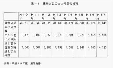 現状、ガスコンロを原因とする建物火災のほとんどは「コンロの消し忘れ」であり、毎年4000件前後発生しています。